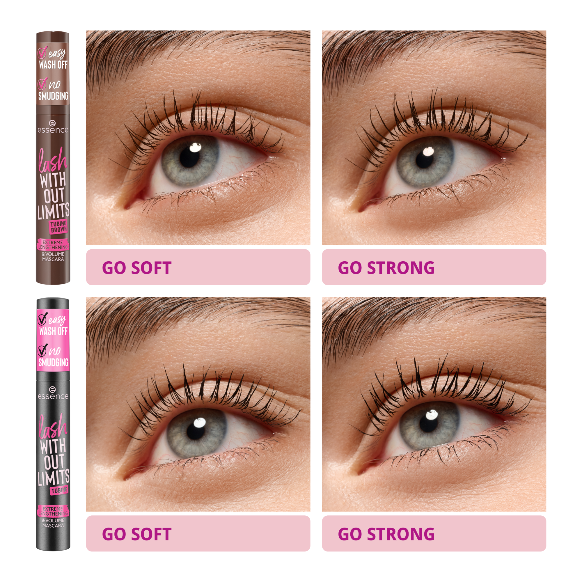 The Essence Lash Without Limits Tubing Brown Extreme Lengthening & Volume Mascara 05 Brown Tubing gives your lashes a beautiful boost with a soft brown shade. Perfect if you love a natural look with extra length and volume. The tubing formula forms lightweight tubes around each lash, making them look longer and fuller without feeling heavy.