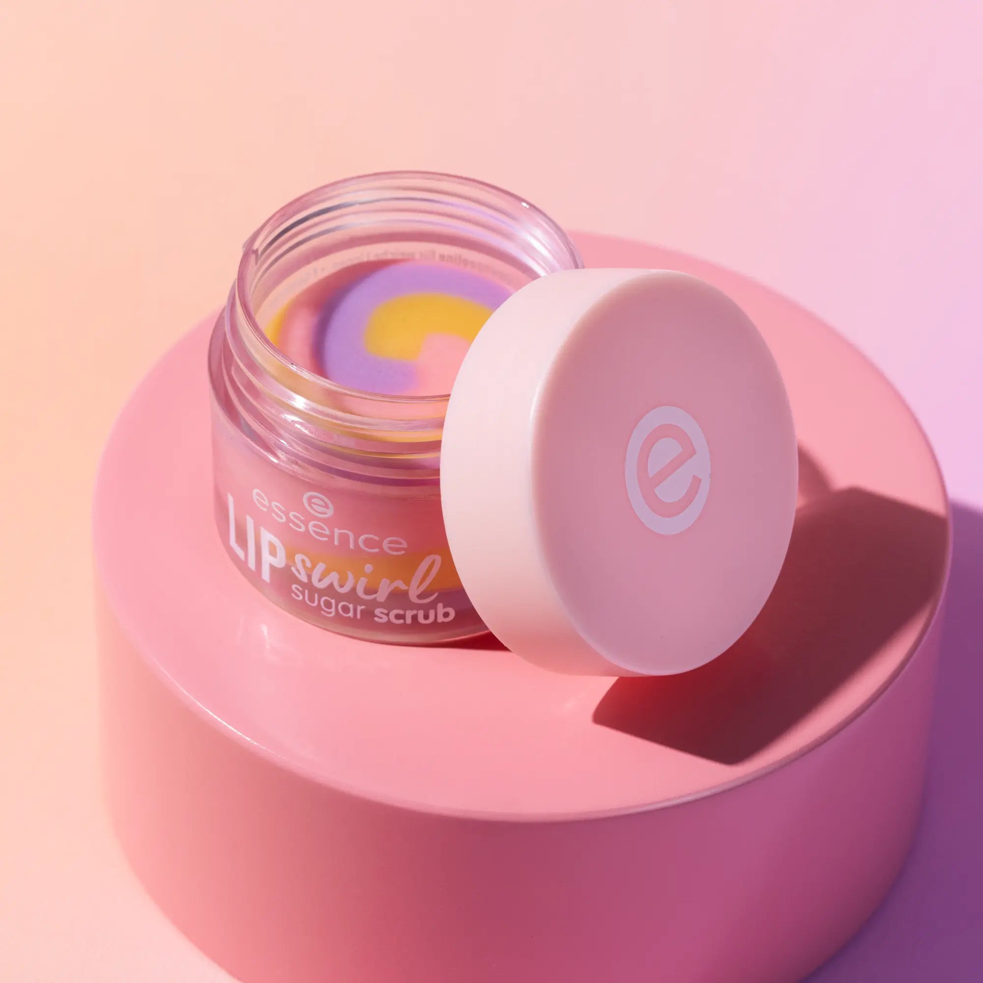 De Essence Lip Swirl Sugar Scrub 01 maakt je lipverzorging een stuk leuker én effectiever. Deze vrolijke lip balm met een swirl van geel, koraal en roze verandert bij contact met je lippen in een zachte, transparante scrub. De fijne suikerdeeltjes verwijderen op milde wijze droge velletjes, terwijl shea boter je lippen voedt en superzacht laat aanvoelen.