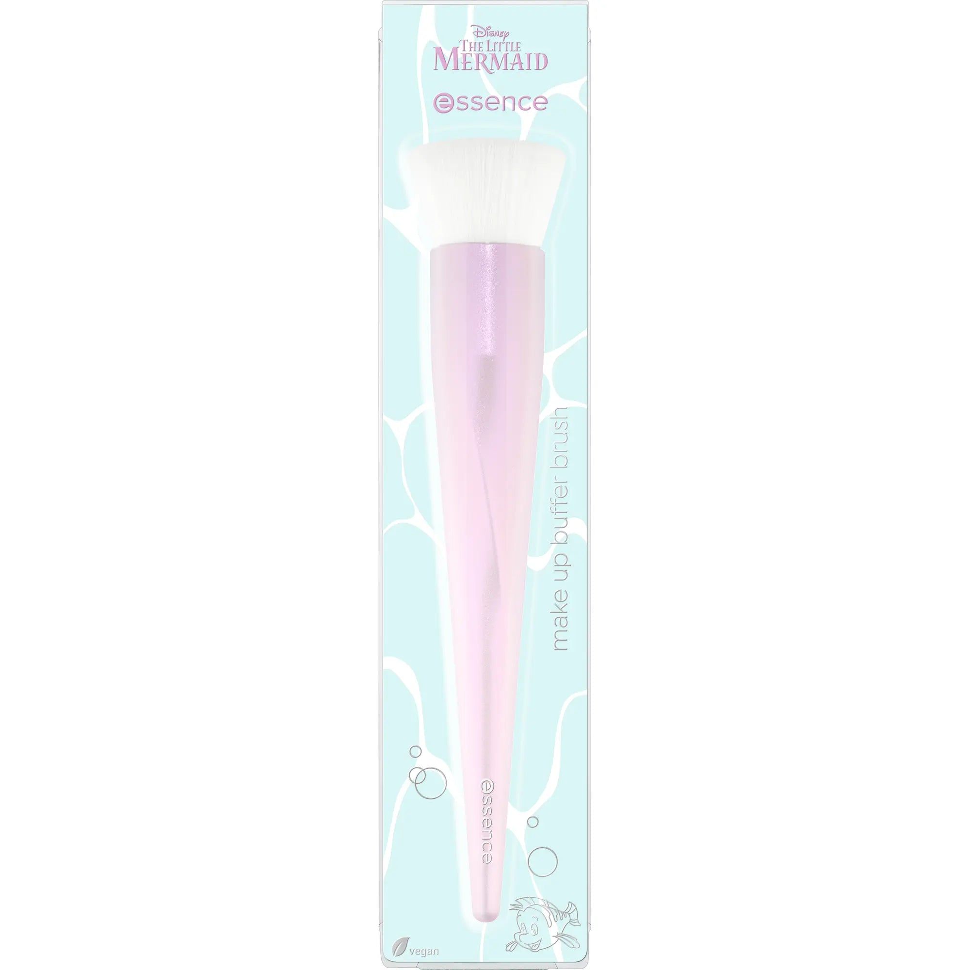 The Essence X Disney The Little Mermaid Make-up Buffer Brush 01 Star Of My Own Story helps you blend foundation and other complexion products effortlessly. With its pearlescent handle and soft white bristles, you can apply makeup evenly for a smooth and flawless result.