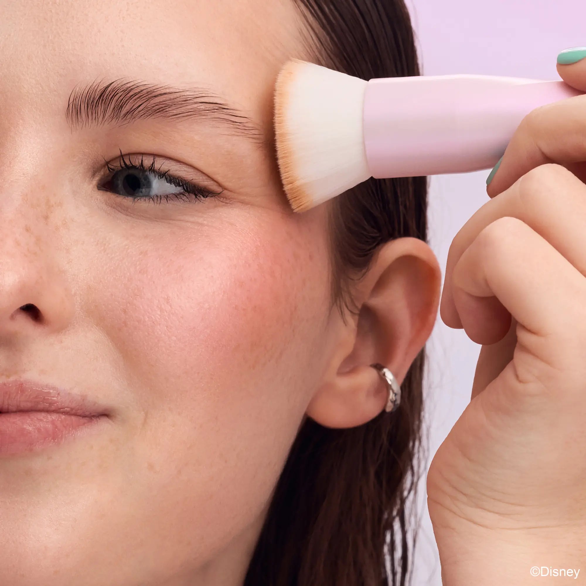 - Use the brush to blend the product into the skin using soft circular motions.