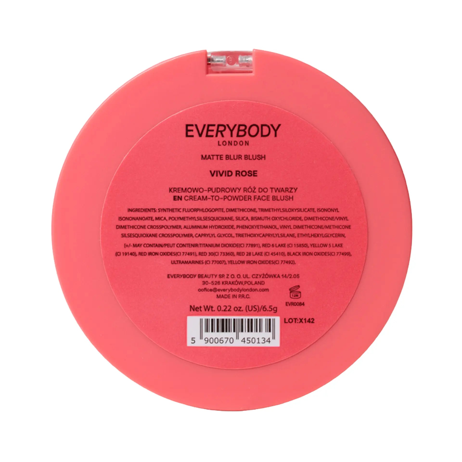 The Everybody London Matte Blur Blush Vivid Rose is a silky cream-to-powder blush that effortlessly melts into your skin, delivering a natural flush with a matte, soft-focus finish. The creamy texture transforms on application into a lightweight powder formula, without stickiness or cakiness.