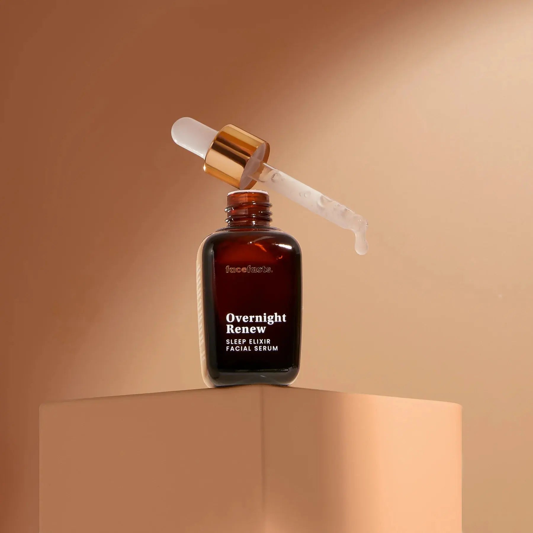 The Face Facts Overnight Renew Sleep Elixir Facial Serum is your dreamy night serum that pampers and strengthens your skin while you sleep. This ultra-nourishing formula is packed with caring ingredients that reinforce your skin barrier and leave you with a hydrated, refreshed glow in the morning!