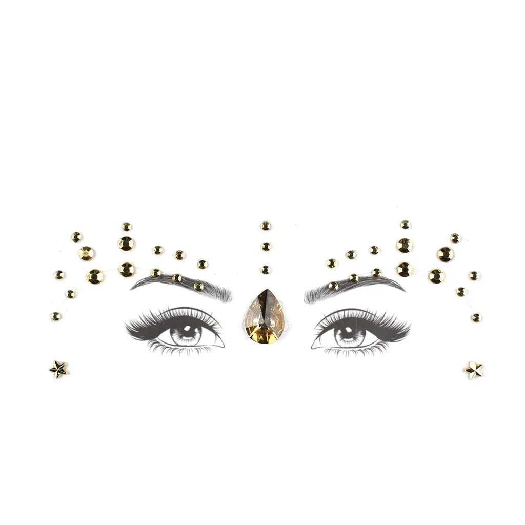 The self-adhesive design of these face jewels is a true game changer. Unlike traditional methods where you have to use glue to apply the stones, these jewels have a self-adhesive layer. You simply remove the protective layer on the back of the jewels, place them in the desired location and press them firmly. It's that simple!