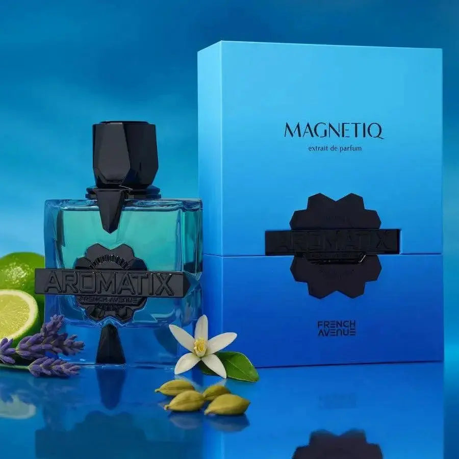 The French Avenue Aromatix Magnetiq Eau De Parfum is a modern woody-aromatic fragrance, perfect for anyone who loves style with a subtle twist. This unisex extrait de parfum opens with a fresh burst of bergamot, lavender, and a touch of pink pepper, a combination that instantly gives you a refined and energetic feeling.