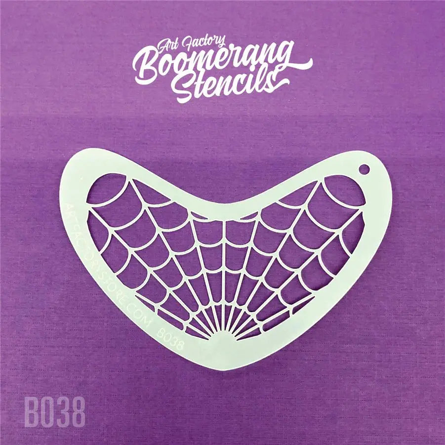 The Fusion Body Art Boomerang Face Paint Stencil By Art Factory Spider Web is your go-to stencil for spooky, mysterious or edgy face paint looks! The spider web design is perfectly cut and allows you to achieve a clean and professional result in seconds – ideal for Halloween, festivals, or creative body paint sessions.