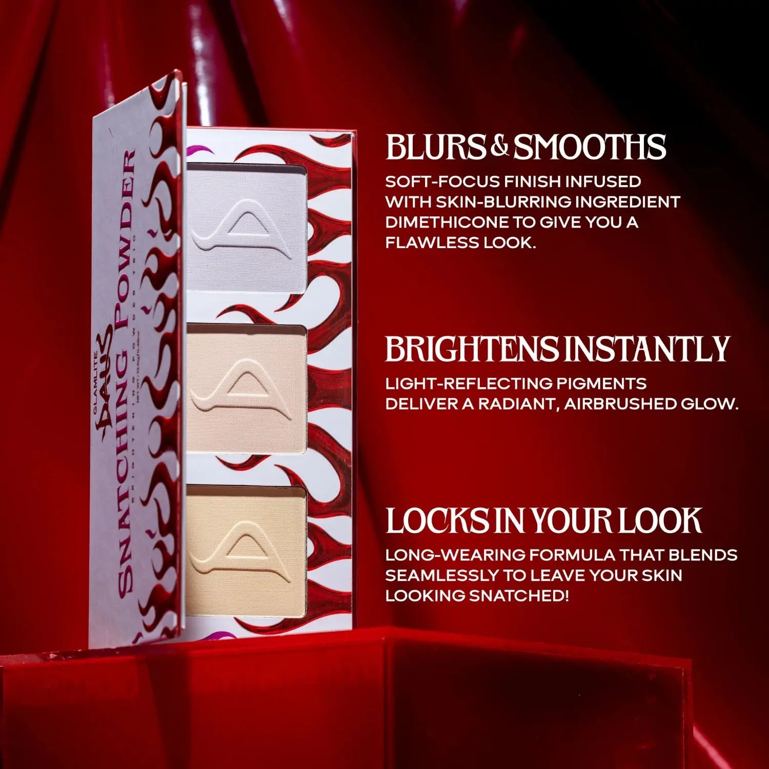 The Glamlite x Daus Snatching Powders are your secret weapon for an effortlessly snatched look. These powders do it all: they brighten, blur, and lift in a single swipe. Whether you want to highlight under your eyes, enhance your contour, or achieve that smooth, filtered effect, these powders have your back.
