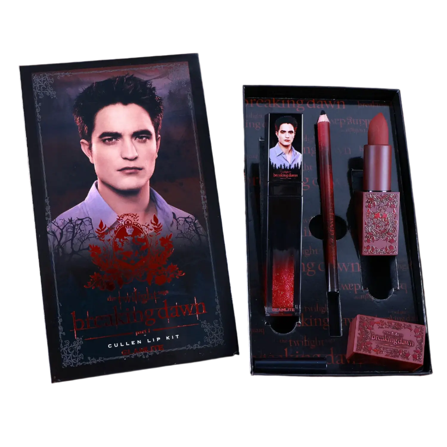 The Glamlite x Twilight Saga Cullen Lip Kit is a fiery tribute to Edward Cullen’s mysterious charm. This 3-piece lip kit, inspired by The Twilight Saga: Breaking Dawn – Part 1, includes everything you need for a seductive lip look: a deep burgundy lip liner, a matching lipstick, and an ultra-glossy gloss. Perfect to bring the passion of the Twilight universe to life on your lips!