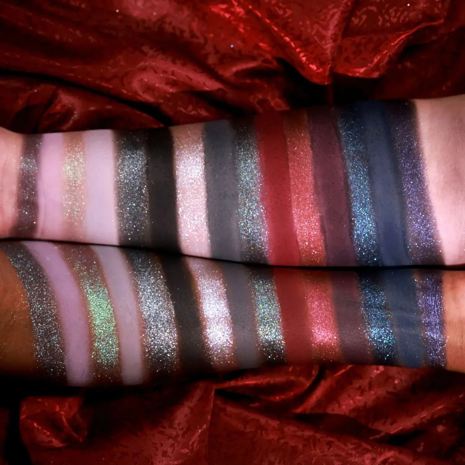 Vegetarian/Lion/Century/Thirst/Renesmee/Edward/Gifted/Mind Reader/Volturi: Talc, Mica, Caprylic/Capric Triglyceride, Calcium Aluminum Borosilicate, Calcium Sodium Borosilicate, Synthetic Fluorphlogopite, Ethylhexyl Palmitate, Silica, Bis-diglyceryl Polyacyladipate-2, Polyisobutene, Dimethicone, Aluminum Starch Octenylsuccinate, Magnesium Stearate, Triethoxycaprylylsilane, Tridecyl Trimellitate, Phenoxyethanol, Polyethylene, Tin Oxide, Tocopheryl Acetate, Caprylyl Glycol, 1,2-Hexanediol, Microcrystalline Wax, Paraffin, Methicone, Dimethicone/Vinyl Dimethicone Crosspolymer, Ethylhexylglycerin, Trimethylsiloxysilicate. Titanium Dioxide (CI 77891), Iron Oxide Black (CI 77499), Iron Oxide Red (CI 77491), Red 27 Al Lake (CI 45410), Red 7 Ca Lake (CI 15850), Black 2 (CI 77266), Ferric Ammonium Ferrocyanide (CI 77510), Blue 1 Al Lake (CI 42090), Red 6 (CI 15850), Red 6 Ba Lake (CI 15850).