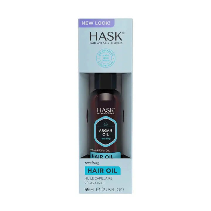 The Hask Argan Oil Repairing Shine Oil Box is the perfect solution for dry and damaged hair in need of a boost of shine and care! This lightweight, alcohol-free hair oil is instantly absorbed, leaving your hair silky smooth without any greasy residue. Ideal for reducing frizz and repairing damaged strands.