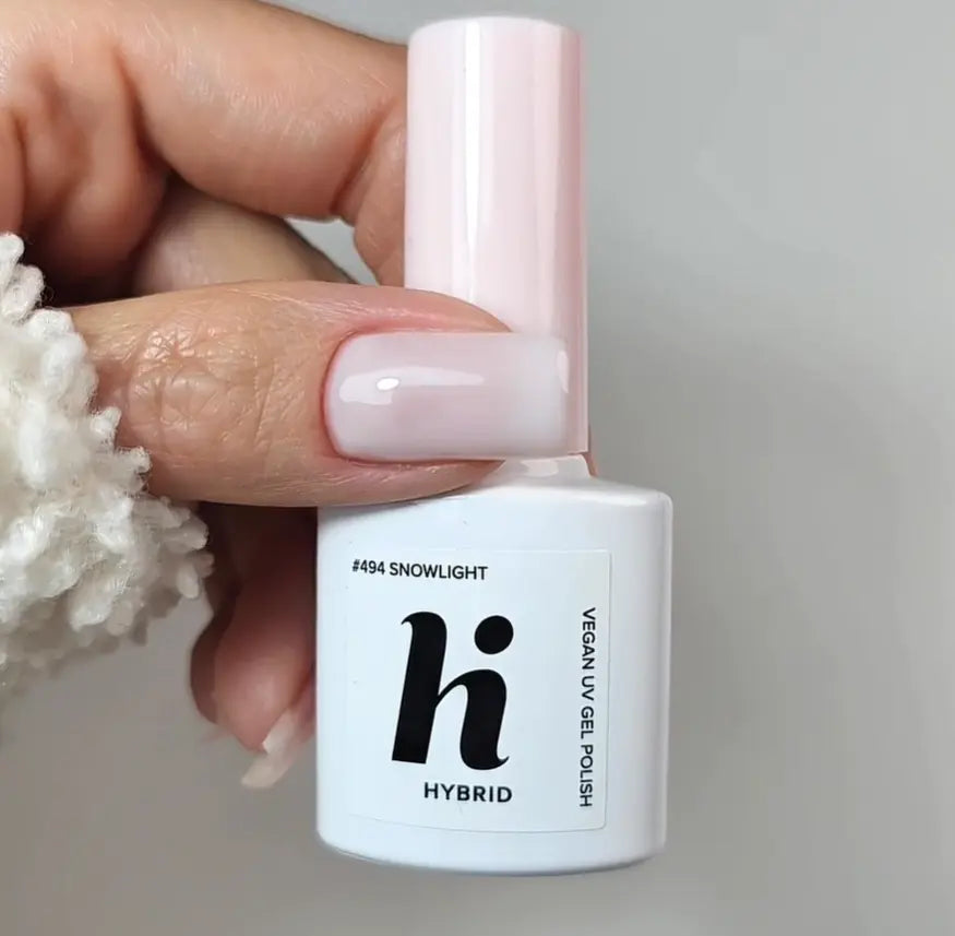 The Hi Hybrid 494 Snowlight UV Gel Polish is a semi-transparent UV gel polish that gives your nails a fresh pearlescent glow with an icy white finish. Perfect for those who love soft, shiny manicures or want a base for frosted or glazed nail art.
