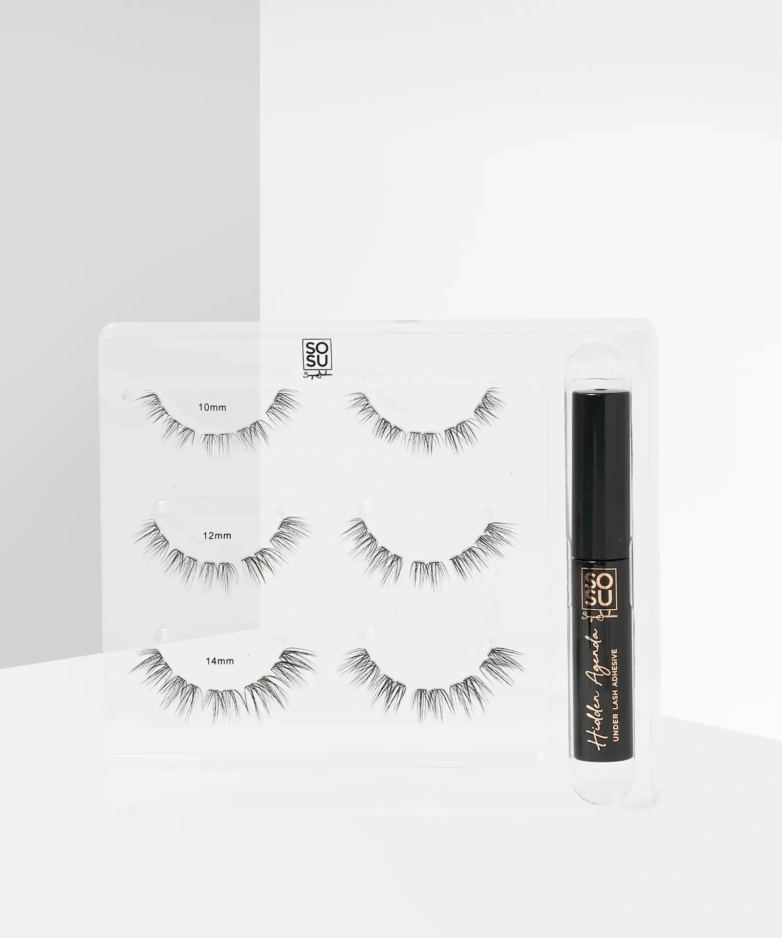 The SOSU Cosmetics Hidden Agenda Lash Kit is the ultimate insider tip for a natural, invisible lash look with salon-worthy results: right at home. These innovative lash clusters are designed to be applied underneath your natural lash line, making the bands completely invisible and giving the illusion of real lashes.