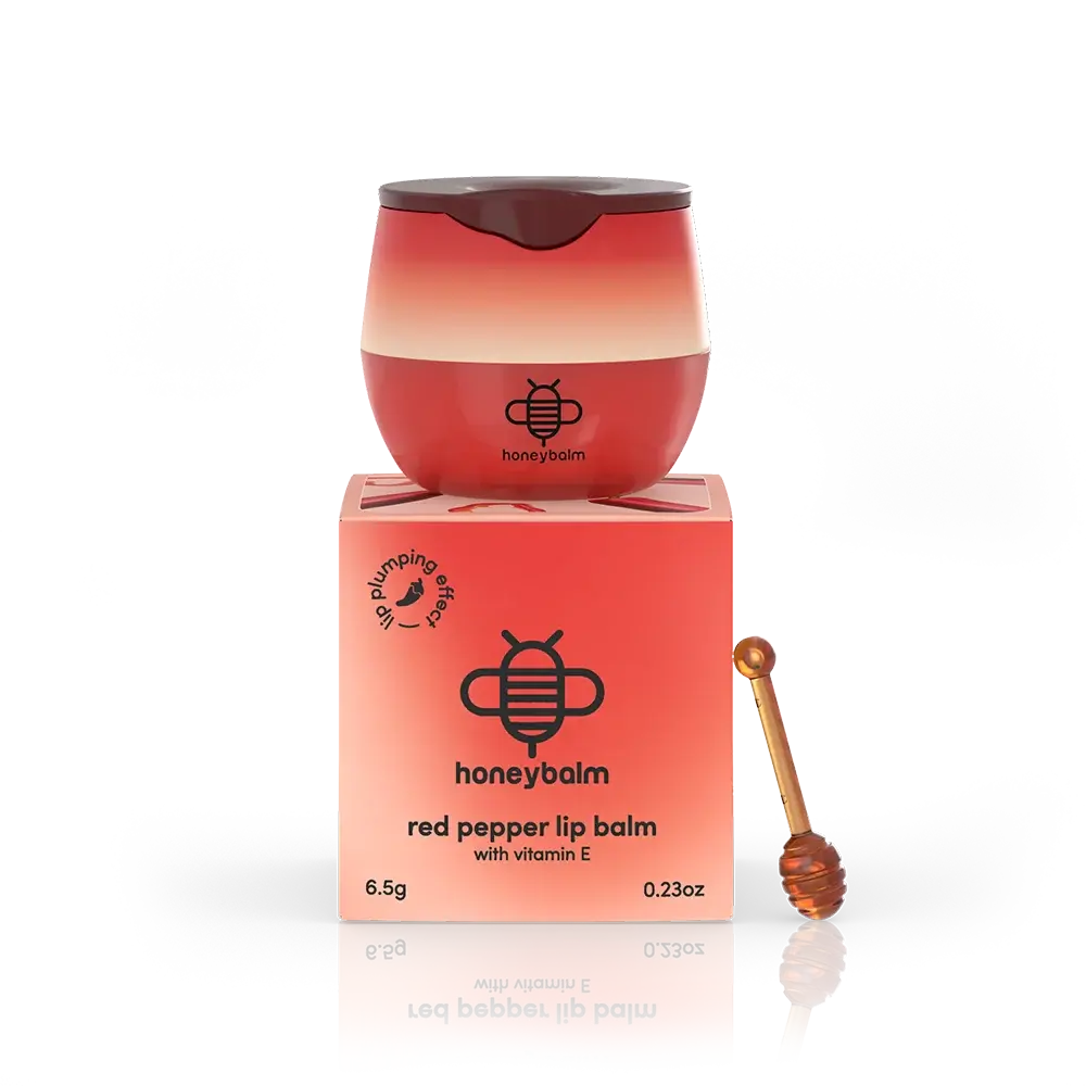 The Honeybalm Red Pepper is everything your lips need for a natural boost and a touch of spice! This lip balm is packed with nourishing ingredients like honey, propolis, cocoa butter and fruit extracts – all chosen to deeply hydrate and protect dry lips.
