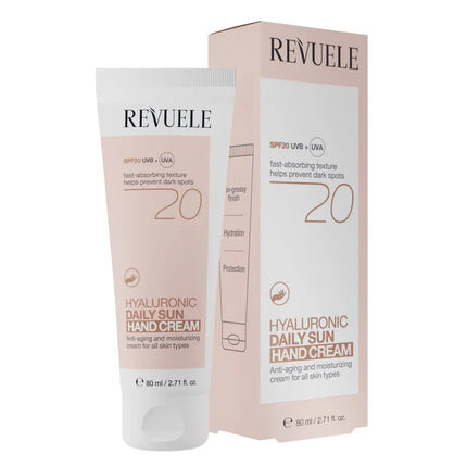 The Revuele Hyaluronic Daily Sun Hand Cream SPF20 is your everyday essential to protect and care for your hands! This lovely hand cream provides intense hydration, helps prevent premature skin aging, and protects your skin from harmful UV rays with SPF20. Perfect for on-the-go, at your desk, or in your bag, your hands stay protected and soft at all times.