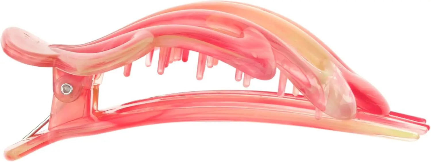 The Coral Hug is designed with a head-friendly shape that lies flat and adapts to the shape of your head. And despite its comfy feel, this clip offers surprisingly strong grip: your hair stays put even when you're on the move. Whether you're on a mat or leaning back on a plane, this clip gives you support and style in one.