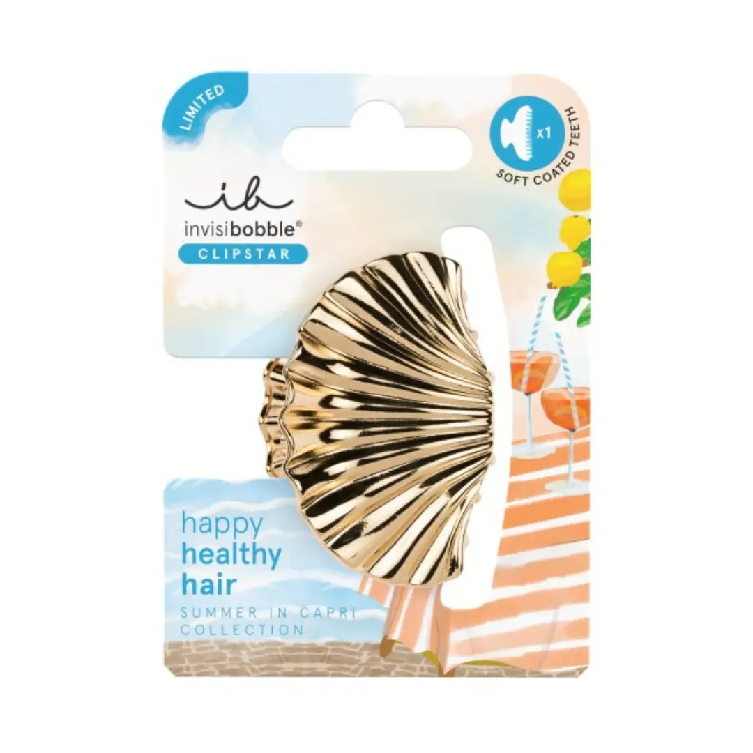The Invisibobble Clipstar Riviera Glam is the hair clip that literally captures your summer vibes! This limited edition clip features a stunning golden seashell shape and is the perfect mix of glam and functionality. Whether you're creating a messy bun or half-up look for a beach walk, this eye-catcher gives every style a Mediterranean touch.