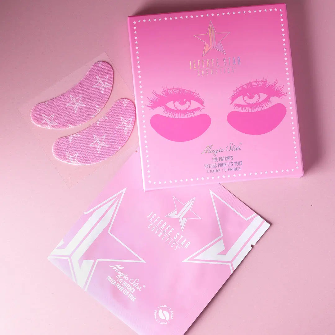 The Jeffree Star Cosmetics Eye Patches Magic Star Eye Patches are your new must-have for a fresh, awake look in no time. These luxurious hydrogel patches with a soft fabric lining give your eyes an instant boost of hydration and cooling. Whether you're just out of bed or winding down after a long day, these patches fix that tired look in just a few minutes.