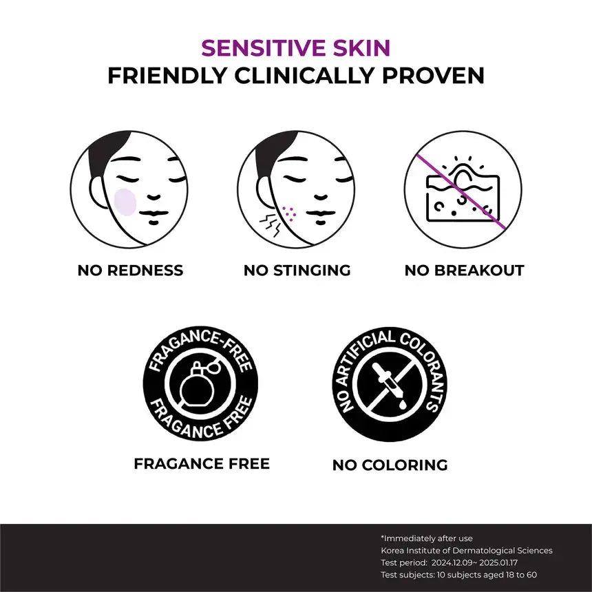 But that’s not all: thanks to the Triple Cica Complex and hyaluronic acid, your skin is simultaneously soothed and hydrated. The formula is lightweight, non-sticky, and completely free of fragrance or artificial color – making it perfect for sensitive or acne-prone skin. K-beauty magic straight from South Korea!