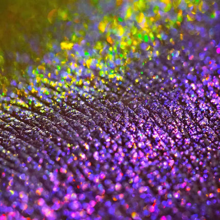The Karla Cosmetics Opal Multichrome Loose Eyeshadows Night Kiss delivers a shimmering, translucent, multidimensional metallic effect. You can apply this glitter over a colored eyeshadow for that extra pop of shimmer! The intensity of the eyeshadow glitter can be built up to your desired level of sparkle. The color shifts depending on how the light hits the eyeshadow.