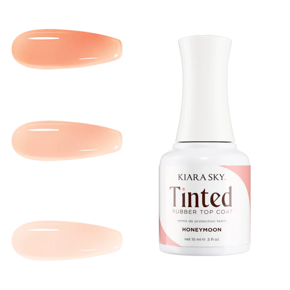 The Kiara Sky Tinted Rubber Top Coat Honeymoon is the perfect blend of colour, shine and strength in one step! This warm light peach shade with apricot undertones gives your nails a subtle glow or a fuller peachy finish – it's up to you how intense you wear it. Whether you go for a barely-there tint or a soft sunrise look: Honeymoon gives your mani that dreamy effect.