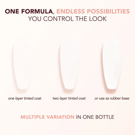 This versatile 3-in-1 formula combines the strength of a rubber base with a hint of color and the shine of a top coat. Thanks to its medium viscosity and self-leveling texture, it applies effortlessly without bubbles or streaks. The advanced adhesion technology ensures long-lasting, chip-free nails that stay beautiful for weeks. Perfect for professional salons and experienced home users who value efficiency and quality.