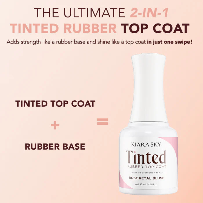 The Kiara Sky Tinted Rubber Top Coat Velvet Blush is a romantic must-have with a soft, muted pink hue and warm peach undertones. This shade exudes softness and elegance and is perfect for any occasion. Wear it sheer for a subtle tint or build it up as a rubber base for a fuller, natural-looking blush finish – as if your nails are wrapped in a velvet layer.