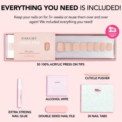 The Kiara Sky xPress Pro Press-on Nails Plane Jane prove that less really is more! These short square press-ons feature a timeless and flattering peachy nude shade that complements every skin tone beautifully.
