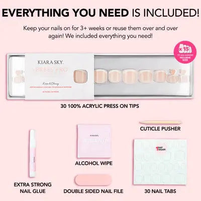 The Kiara Sky xPress Pro Press-on Toe Nails Keep It Classy take your pedicure to the next level – in just minutes! These stylish press-on toenails with a chic French tip design are the perfect solution for a quick and effortless salon look. Ideal for spontaneous beach days, open-toe moments, or whenever you want well-groomed feet without the hassle.