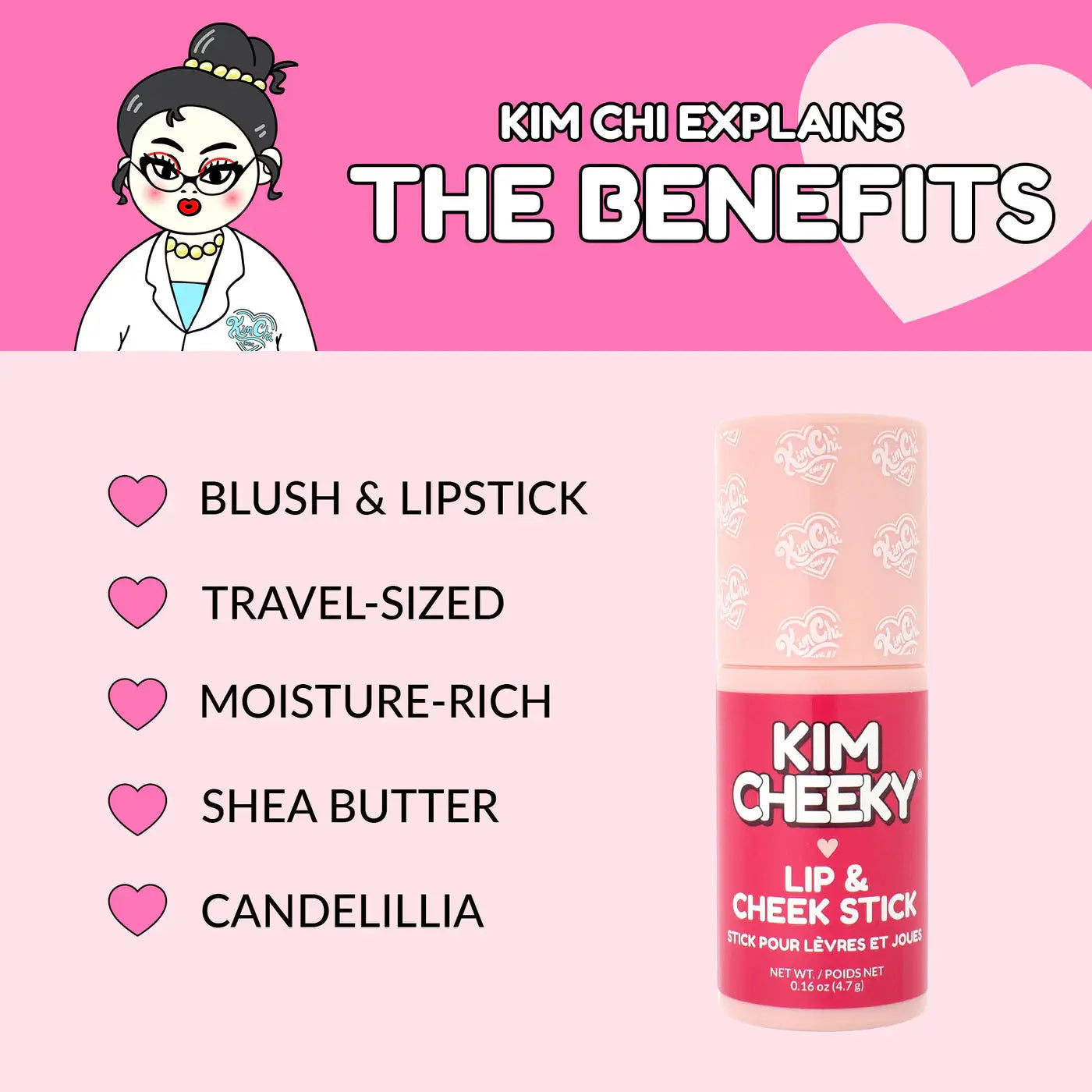 The KimChi Chic Beauty Kim Cheeky Lip & Cheek Stick Dolled is your go-to for that doll-like flush that's always on point. This creamy multitasker in a sweet pink shade gives your cheeks and lips a soft pop of color with a juicy glow. Dolled is perfect if you're into a girly, fresh and flirty look in just one swipe.