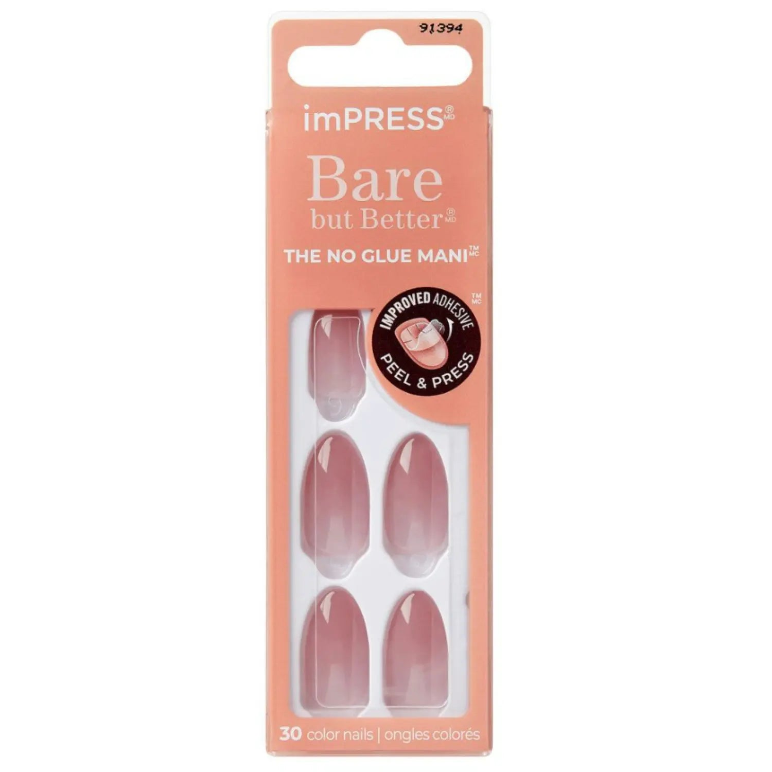 Kiss imPRESS Color Bare But Better Nails Serenity is your ticket to a serene, minimalist nail look with a natural finish. These glue-free press-on nails from the Bare But Better collection feature a soft nude shade that fits perfectly with the clean girl aesthetic: fresh, subtle and super stylish. The natural shine gives your hands a neat, refreshed appearance: no fuss required.