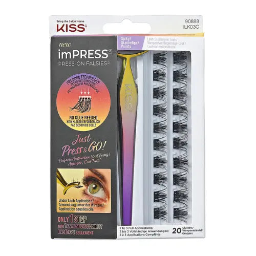 Create the perfect eye look in just one step with the Kiss Impress Press on Falsies Kit 03! These revolutionary lashes feature pre-bonded technology, so they adhere directly to your natural lash line and last for up to 24 hours.