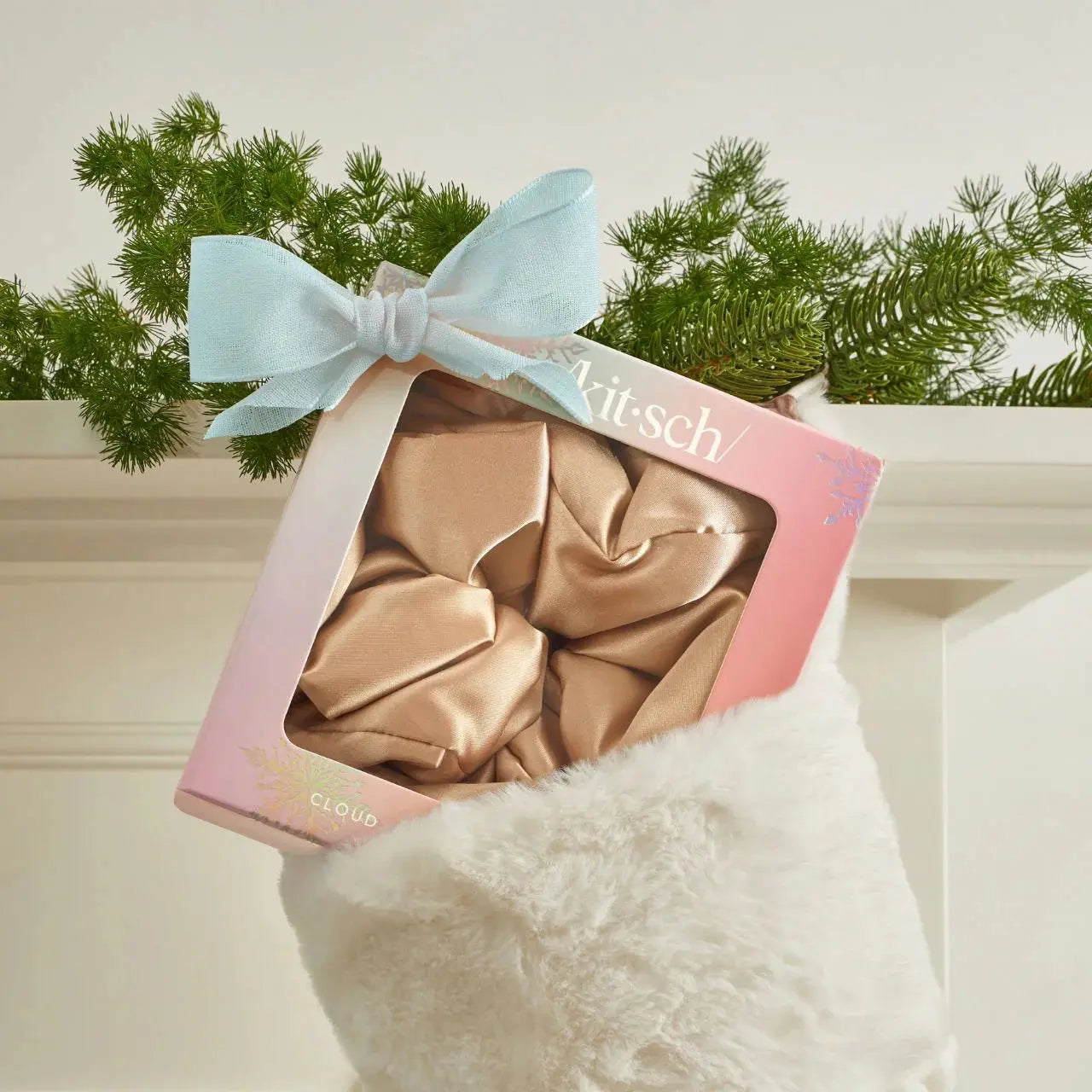 The Kitsch Cloud 9 Satin Pillow Scrunchie Champagne is the ultimate luxurious hair accessory that cares for your hair while keeping it stylish, even while you sleep! Inspired by the Holiday Wonderland collection, this scrunchie is not only a beautiful gift but also a must-have for yourself. The silky soft satin fabric protects your hair from breakage, doesn’t tug, leaves no creases, and gently keeps your hair in place. Perfect for a relaxing beauty sleep or adding an elegant touch to your everyday look!