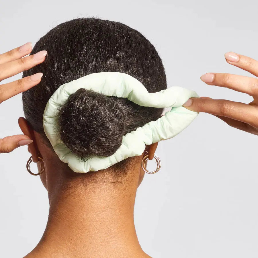 - Gather your hair into a ponytail or bun, then place the scrunchie around your hair.
