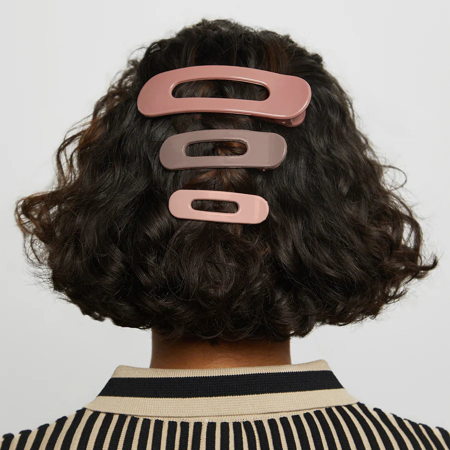 With three different sizes, there is always a clip to match your mood and hairstyle. Use the smallest for bangs, the medium for a half up look or the large clip to secure all your hair in one simple twist. Made from recycled plastic, these clips combine style with a more sustainable choice.