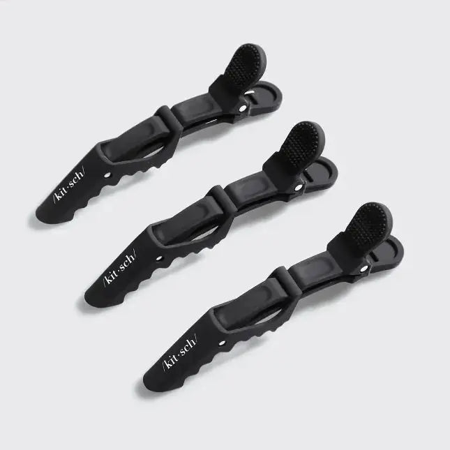 The Kitsch Recycled Plastic Crocodile Clip 3pc Black consist of a set of 3 nude hair clips, which are specially designed to remove your hair from your face while styling or applying your make-up, ideal, right?!
