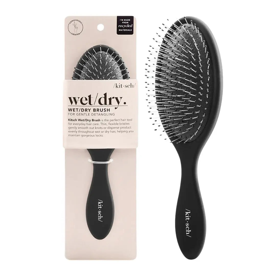 The Kitsch Recycled Plastic Wet/Dry Brush Black is the ultimate brush for effortless detangling and daily hair care. With its thin, flexible bristles, this brush glides gently through your hair without pulling or breaking, making it perfect for both wet and dry hair. Made from recycled plastic, it’s a sustainable and hair-friendly choice.