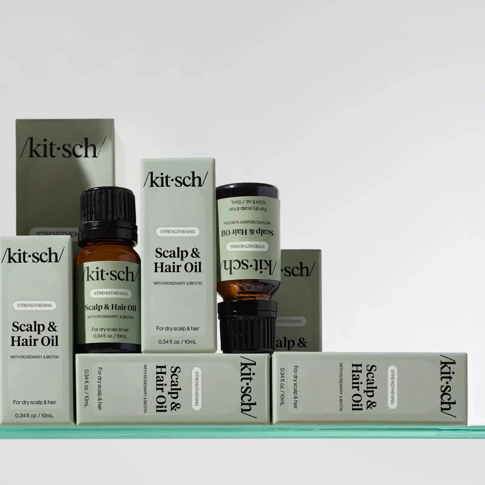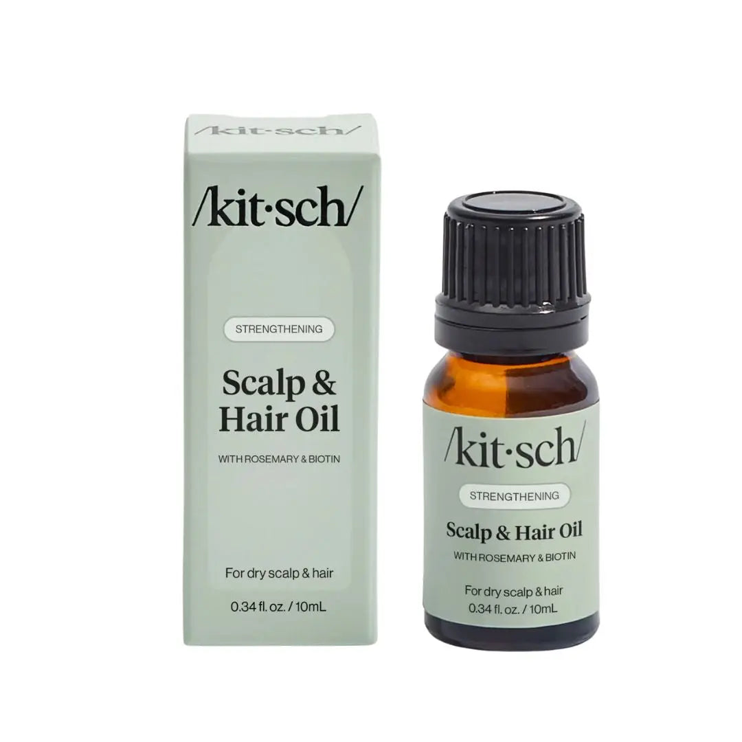 The Kitsch Strengthening Scalp & Hair Oil with Rosemary & Biotin is the ultimate multitasking oil for a healthy scalp and strong, shiny hair. Use it as a pre-wash treatment to nourish and refresh your scalp or as a daily hair oil to hydrate your ends and add extra shine.