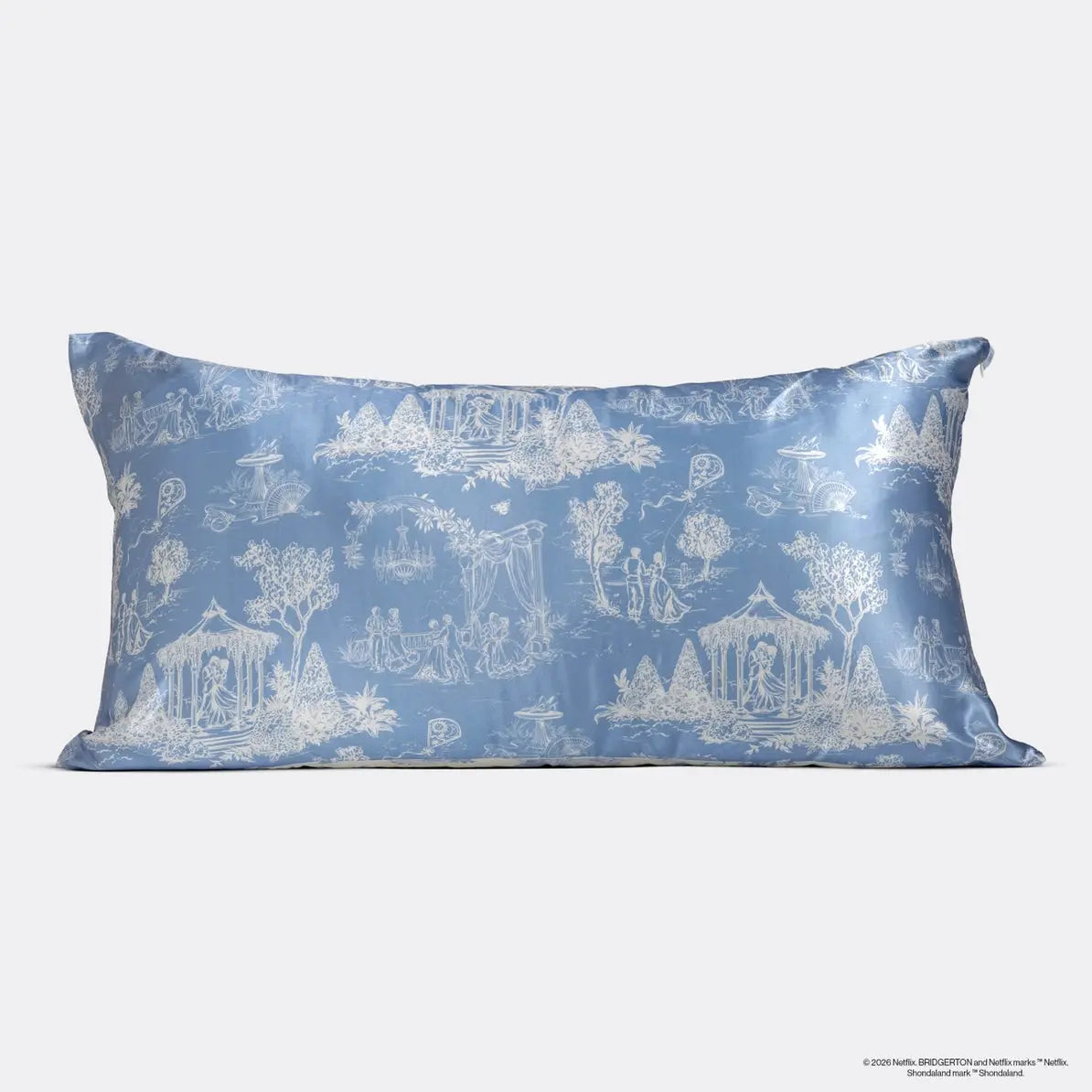 The Kitsch x Bridgerton Satin Pillowcase Garden Toile King is an elegant addition to your bed that not only looks beautiful but is also gentle on your skin and hair. With a romantic Bridgerton toile print on one side and a contrasting pattern on the other, you can flip the pillowcase for a fresh, fairytale-inspired look that fits perfectly in your bedroom.