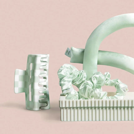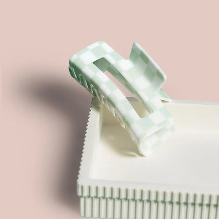 The Kitsch x Divi Recycled Plastic Checkered Claw Clip is the perfect blend of style and functionality. With its trendy checkered pattern, this hair clip gives your look a fashionable upgrade while keeping your hair securely in place without pulling or slipping. Ideal for thick, thin, straight, or curly hair!