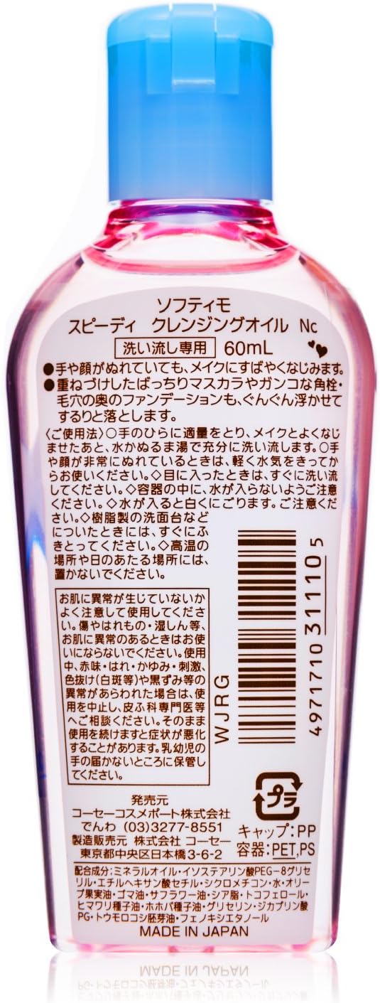 The Kose Softymo Speedy Cleansing Oil 60 ml. is a cleansing oil that thoroughly purifies your skin without drying it out. This magical cleansing oil is specially formulated to remove makeup, dirt, and impurities in just one easy step. Its lightweight, silky texture glides effortlessly over the skin and instantly dissolves all traces of makeup – without stripping the skin.