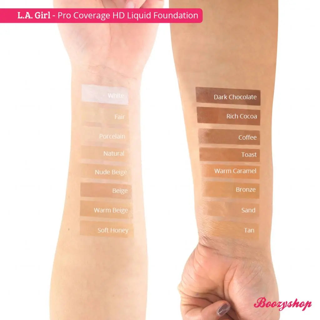 The LA Girl Pro Coverage HD Liquid Foundation is an HD foundation with a medium to full coverage and a flawless finish. This foundation is free of parabens and contains anti oxidants which hydrate your skin and improve the structure of your skin.