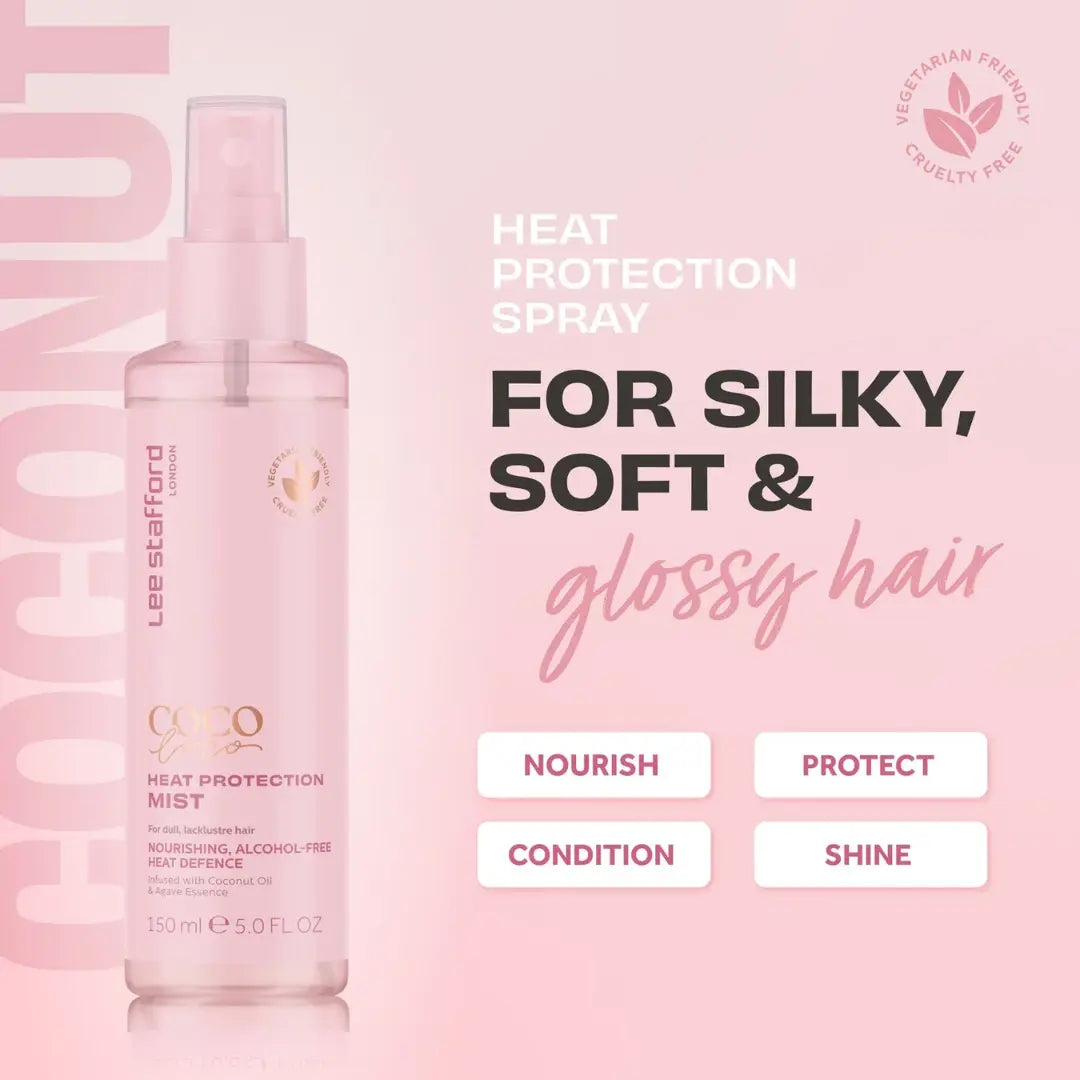 The Lee Stafford CoCo LoCo & Agave Heat Protection Mist is a moisturizing and lightweight spray that protects your hair during styling or curling! The added coconut oil also makes your hair wonderfully soft, shiny and hydrated, making your hair shine like never before!