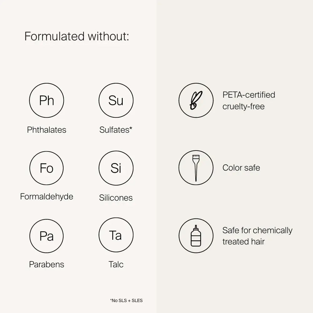 - free of silicones, phthalate, sulfates, formaldehyde and parabens