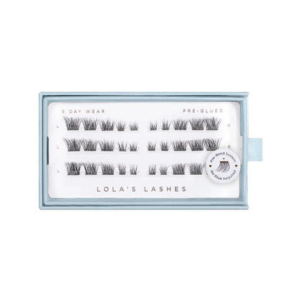 The Lola's Lashes Petite Natural Pre Mapped Pre Glued Lashes are specially designed for smaller eyes or for those who love a subtle, natural lash look. These lashes add just the right amount of definition to your lash line without overpowering your eye shape – perfectly balanced and featherlight.