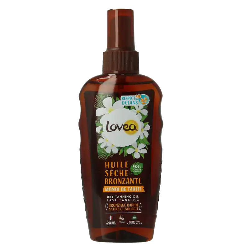 The Lovea Dry Tanning Oil Tahiti Monoi is your ideal partner for a radiant, sun-kissed glow. This dry tanning oil is enriched with the iconic scent of monoi and leaves your skin feeling silky soft, while giving it a naturally bronzed look. Perfect for tanned or dull skin that could use a sunny boost.