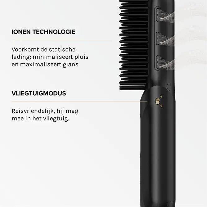 With 3 adjustable heat settings (160°C, 180°C and 200°C), the Touch Up is suitable for all hair types. The ceramic-coated bristles distribute heat evenly, while ionic technology reduces frizz and adds silky shine. Thanks to the rounded design, you can not only straighten, but also curl or add volume. And with a battery life of at least 40 minutes: plus the option to use it as a power bank: you truly have everything you need. Hello hair & phone goals in one!