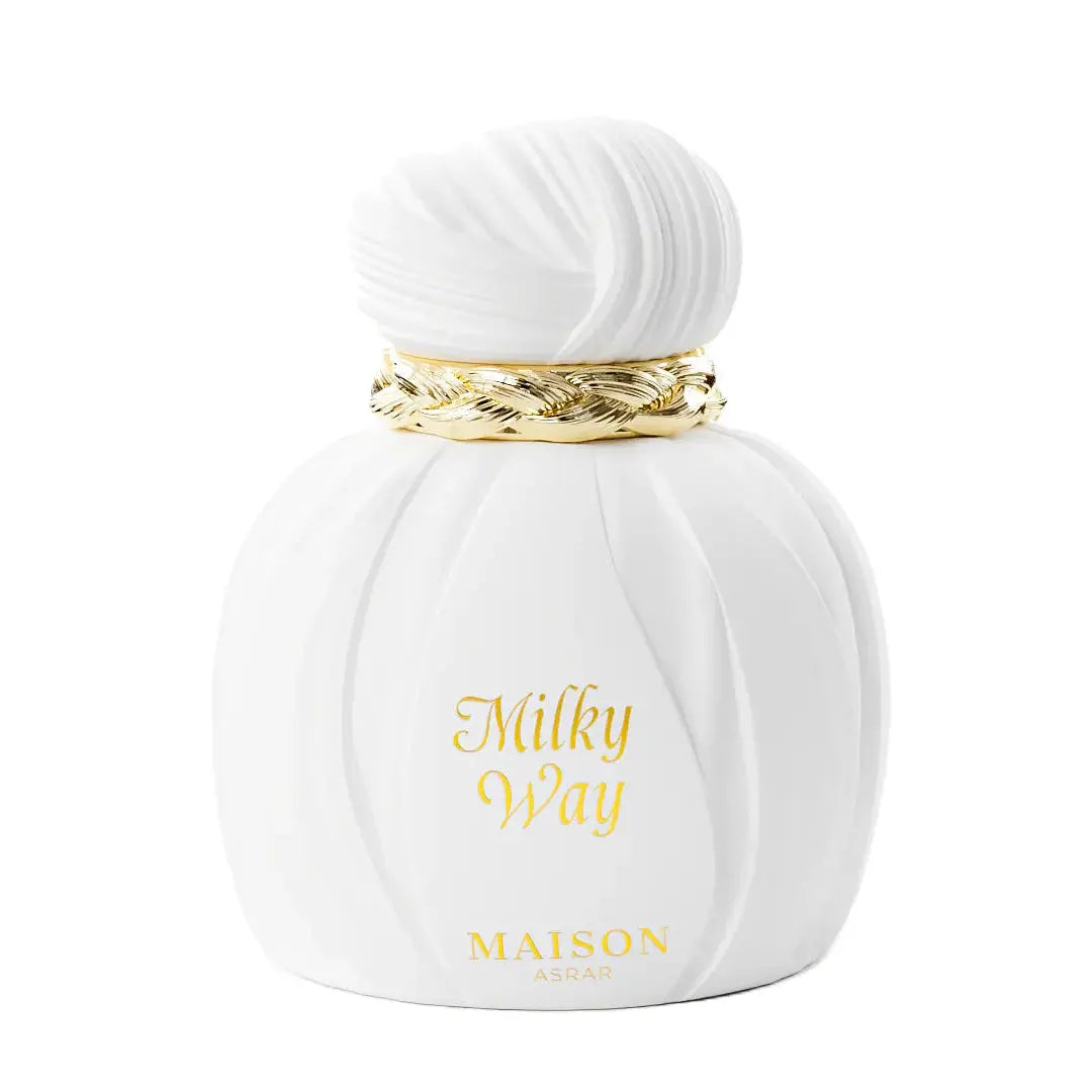 The Maison Asrar Milky Way Eau De Parfum, inspired by Milk Commodity, is a warm, creamy oriental vanilla fragrance that captivates both women and men with a luxurious and comforting scent experience. This elegant unisex perfume blends sweet gourmand notes with soft woody accents, creating an inviting fragrance that is perfect for cozy evenings, a date, or whenever you want to leave a unique impression.