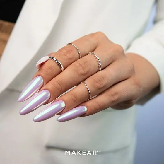 The Makear SFX Liquid Effect Dust BP02 is a revolutionary innovation in nail art that takes your manicure to the next level. This liquid chrome powder gives your nails a mirror-like shine and an intense pearlescent effect, without the mess of loose powders. Thanks to its liquid formula and built-in brush, it applies quickly, cleanly, and precisely.