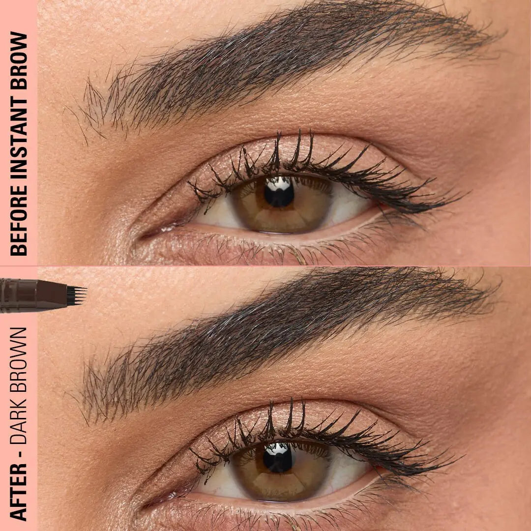 The Makeup Revolution Instant Brow Hair Pen is your shortcut to fuller, fluffy brows in just seconds! With the unique six-pronged applicator, you can create ultra-fine hair-like strokes that instantly make your brows look fuller, more defined and natural. No fuss, no smudges – just flawless brows.