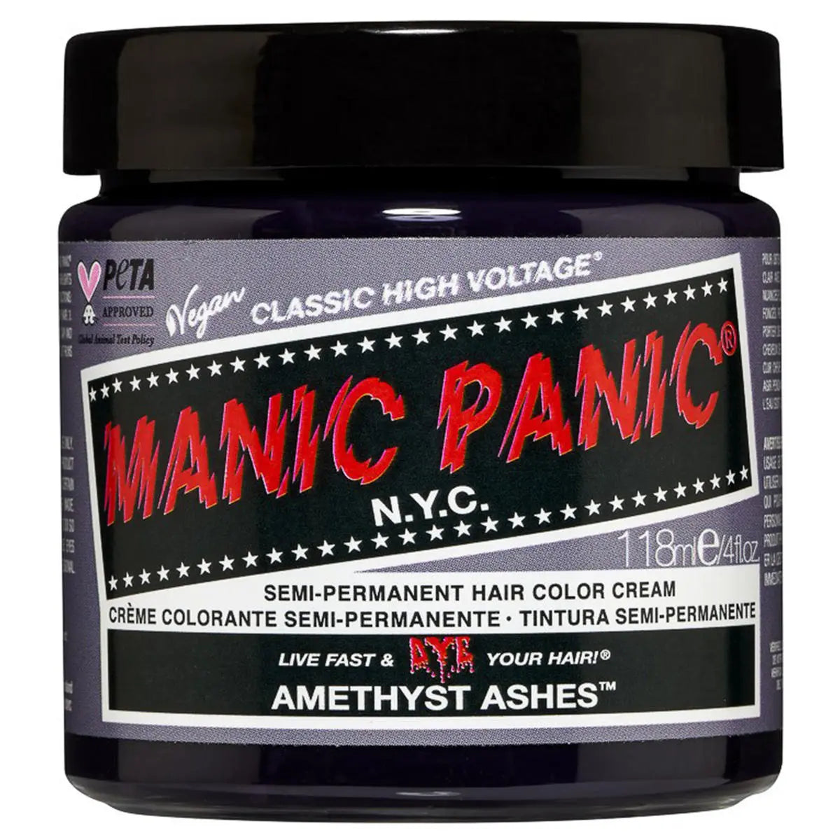 The Manic Panic Cendres D'Amethyste Hair Color is a smoky grey hair dye with cool purple undertones that instantly gives your look an edgy, mysterious vibe. This shade from the High Voltage Classic collection is perfect if you love unique, cool toned hair colors with a subtle purple glow.