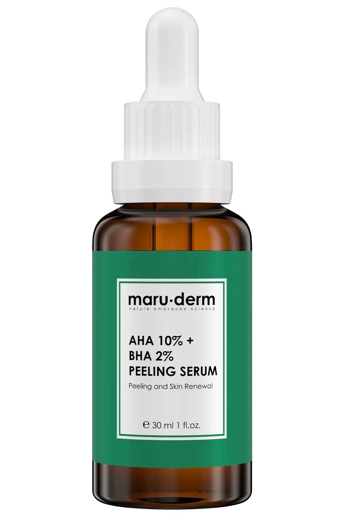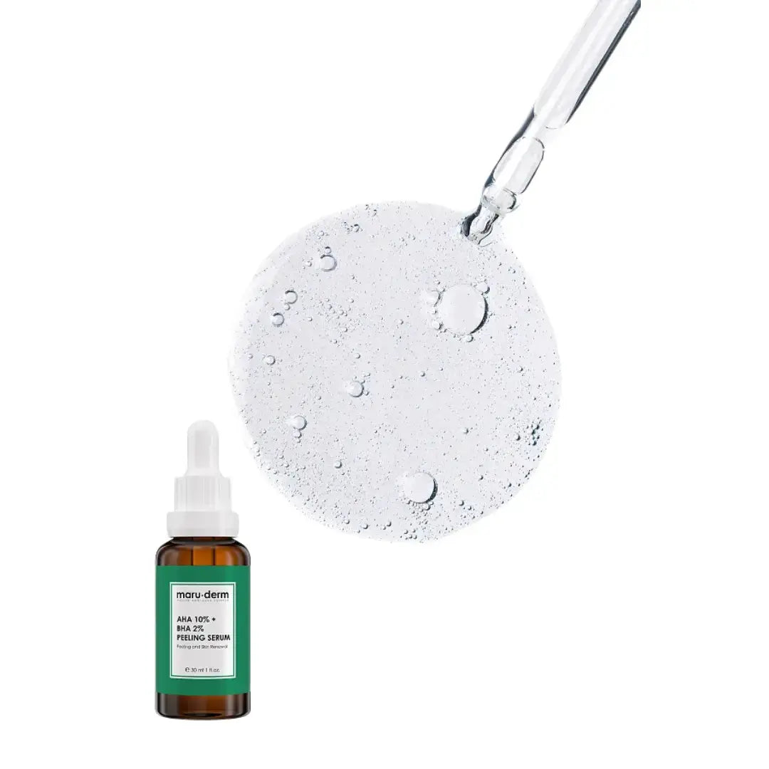 The Maruderm AHA 10% + BHA 2% Peeling Serum is a carefully formulated serum that combines the exfoliating power of Alpha Hydroxy Acid (AHA) with the deep-cleansing effect of Beta Hydroxy Acid (BHA) for a dual approach to skin renewal and clarity. This powerful combination improves skin texture, reduces blemishes, and promotes skin cell turnover.